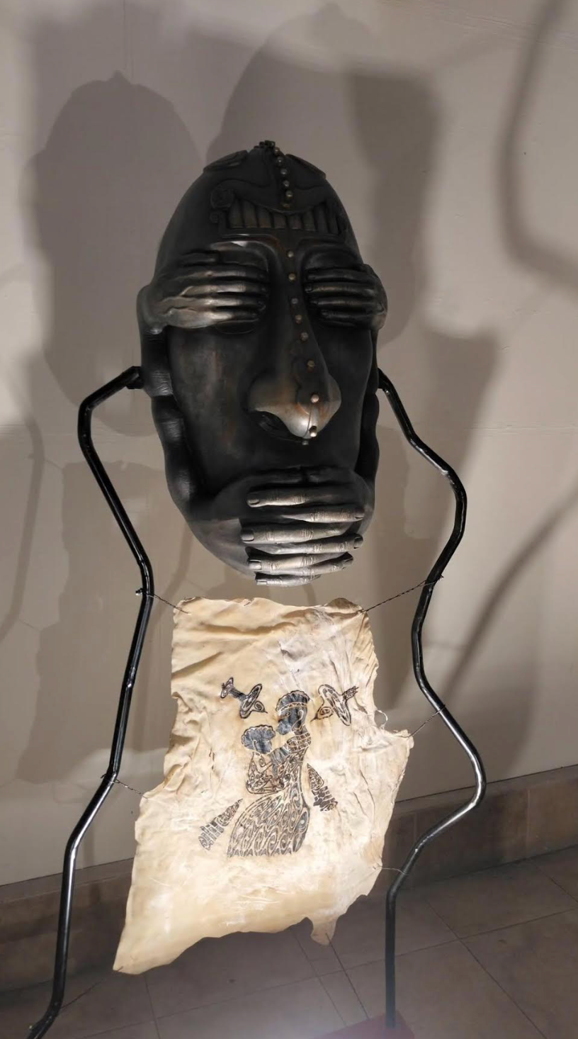 Topeng-topeng ini menggaungkan permasalahan yang menyelimuti tanah Papua, seperti sulitnya mencari dan menyebarkan informasi tandingan demi menantang dominasi pemberitaan dari rezim kolonial Indonesia. Salah satu topeng yang dipamerkan di Pendhapa Art Space ini menunjukkan wajah yang kedua mata sekaligus mulutnya dicengkeram oleh tangan raksasa.