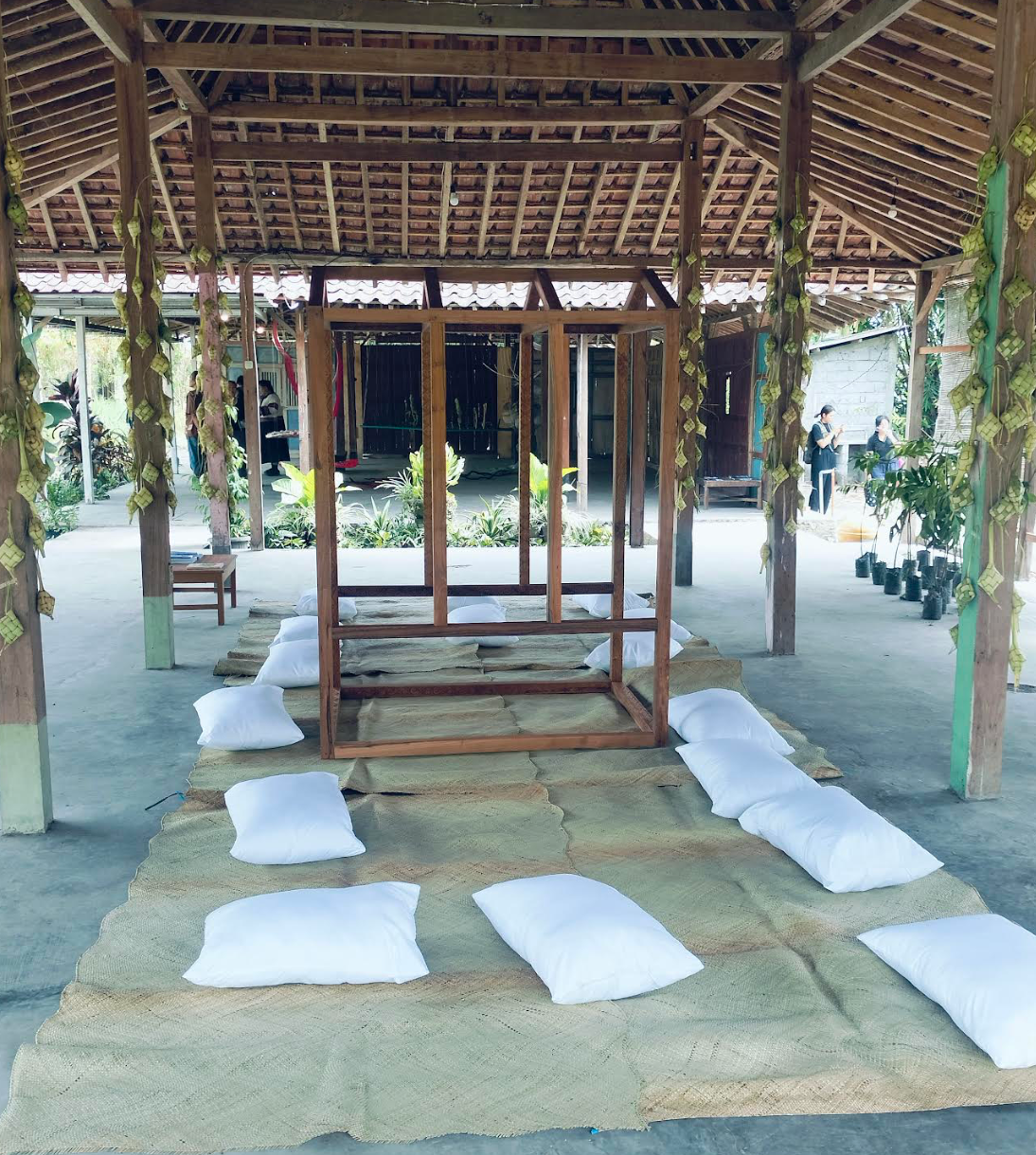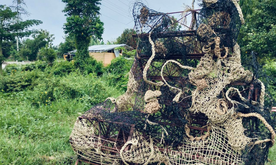 Lewat pertemuannya yang berulang kali dengan warga, Nathalie menghasilkan suatu instalasi seni yang menampilkan konstruksi kayu yang menyerupai rumah mini beralaskan samak.