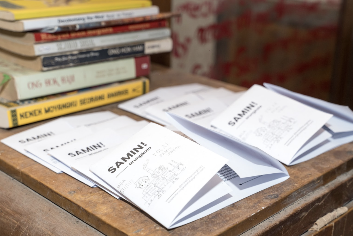 “Omah Samin” berangkat dari temuan dan dokumentasi yang kami lakukan saat tinggal di Kendeng, berkolaborasi dengan kawan-kawan muda Wiji Kendeng serta dalang muda dari wilayah itu bernama Salman Hilal. Melalui “Omah Samin”, kami merancang peristiwa bertajuk Samin Study Club: sebuah forum warga bersama anak-anak, para Ibu, hingga ruang diseminasi pengetahuan alternatif bersama para seniman atau peneliti muda.