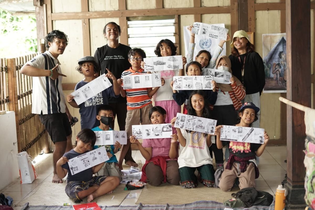 Ya, dalam Biennale Jogja tahun ini, kami banyak melakukan kolaborasi, juga melakukan praktik-praktik kolektif secara informal seperti zine-making, collective writing, collective drawing, dan juga tur. Kerja bersama seperti ini memungkinkan pertukaran pengetahuan terjadi, bukan hanya pada para art lovers, tapi juga anak-anak SD, para ibu kelompok tani, kawan-kawan penulis muda, seniman muda, para zinester, juga siapapun yang hadir!