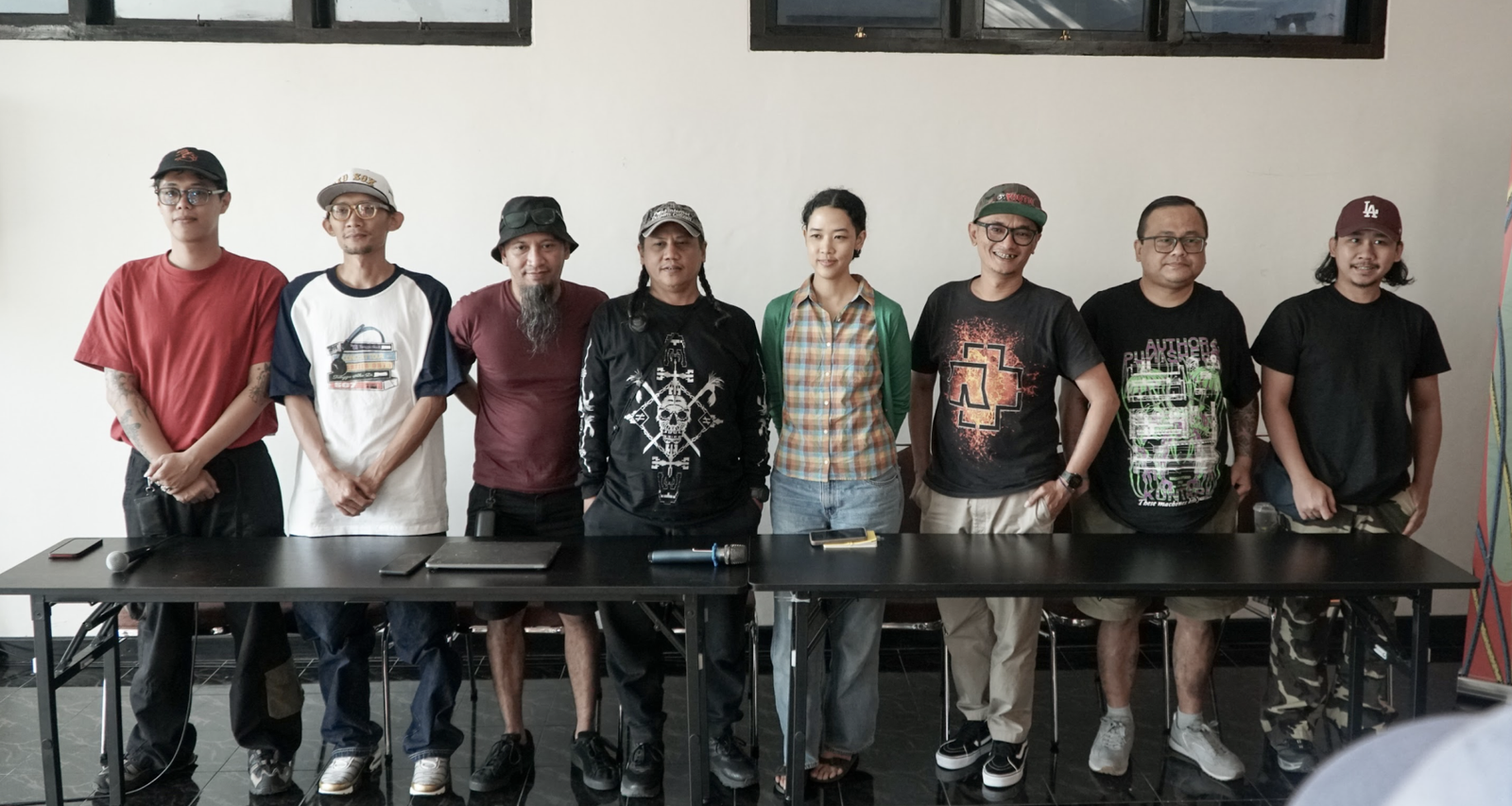 Tujuh orang duduk berjejer di dalam ruangan Modular Space, VRTX Compound Space, menghadap Utara pada Rabu (6/8). Di hadapan mereka, berjejer pula belasan orang yang siap untuk mendengarkan penjelasan dalam sesi temu media. Tujuh orang itu adalah Sanjonas Kristy (Post Party Syndroma), Herbudi Tri Prasetya a.k.a DJ Paws (Jumat Gombrong), Andreas Siagian, Wok The Rock, Leilani Hermasih, Ari Wulu, dan Indra “Menus” Hermawan (Jogja Noise Bombing).