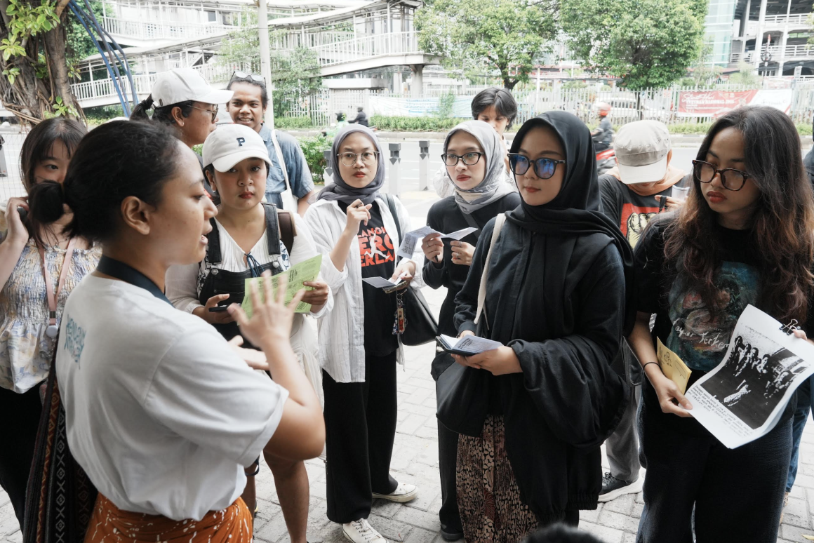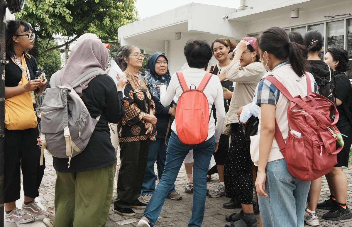 Untuk menyelipkan kisah lain, kami akan merangkum sedikit kisah dari tanggal 18 Agustus. Sehari setelah pameran arsip, kami melakukan anti-tur bersama dua sosok hebat dari Paduan Suara Dialita dan juga kawan-kawan Perempuan Mahardhika. Kami berjalan ke beberapa titik situs ingatan, dari kantor DPP Gerwani hingga bekas Penjara Bukit Duri tempat para tahanan politik perempuan ditahan pada setelah Oktober 1965. Seorang Ibu yang pernah ditahan di Bukit Duri mengisahkan pengalamannya, kami mencatat dan mengingat.