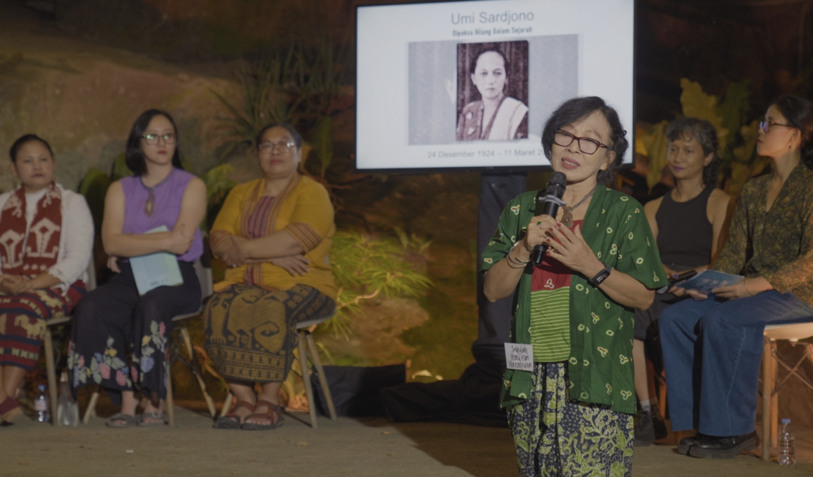 “Ketika perempuan menggambarkan kehidupan sehari-hari yang damai dan tenang, mereka menggambar bunga, menyulam buat anaknya, itu dianggap nggak nasionalis. Nggak revolusioner. Jadi bahkan dalam konsep revolusioner pun ada gendernya,” ungkapnya.