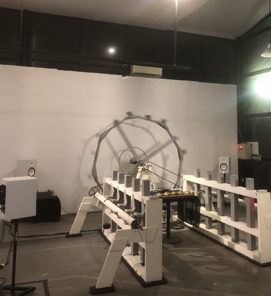 Sehari setelahnya saya mendatangi Kincia, sebuah karya seni instalasi milik Rani Jambak yang dipasang di dalam ruang pamer The Ratan Biennale ke-18 Jogja. Saya merasakan pengalaman yang lebih imersif dan organik. Bebunyian bersumber langsung dari objek-objek yang dipresentasikan, termasuk instrumen talempong dan tombol-tombol dengan fitur untuk mengganti varian bebunyian yang juga diperdengarkan dengan bantuan pengeras suar. Kincia memperlihatkan bangunan artistik berbentuk kincir yang menjadi focal-point ruang pamer. Kincirnya terus berputar dan ragam bunyi bersahutan melatari ruangan yang saya kelilingi dan jamah di tiap sudutnya.