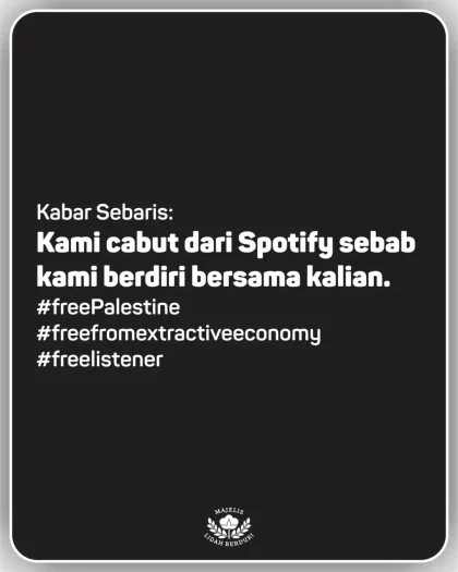 Musik bagi kami bukan komoditas. Ia adalah pernyataan keberadaan, cara berbagi luka, cara menyambung solidaritas. Jika hari ini kami masih di Spotify, itu bukan karena kami setuju dengan sistemnya, tapi karena kami belum menemukan jalur yang benar-benar adil untuk semua orang.