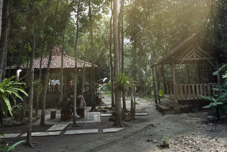 Tempat ini ternyata lebih dari yang aku bayangkan. Di sini, di antara kesyahduan yang jauh dari bising kendaraan, di pinggir sebuah sungai kecil udara bergerak lebih pelan. Sementara pohon-pohon menjulang menjaga siapapun yang ada di bawahnya dari panas matahari. Di antara mereka berdiri, sebuah pendopo sederhana, atapnya teduh, lantainya hangat, seperti ruang yang dengan sabar menampung siapa pun yang ingin bercerita.